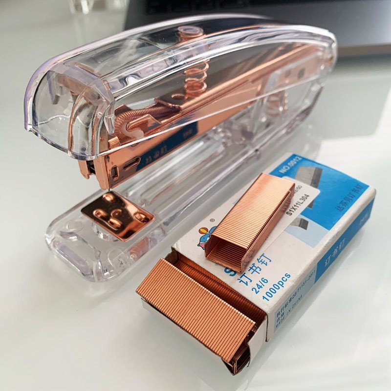 Transparent Stapler Fit for Metal 12# 24/6 Staples Rose Silver Color Office Accessories School Stationery Binding Supply